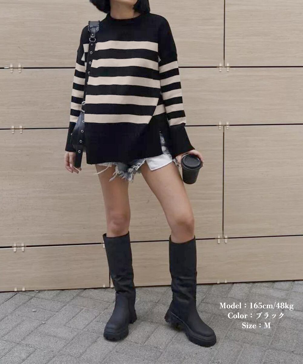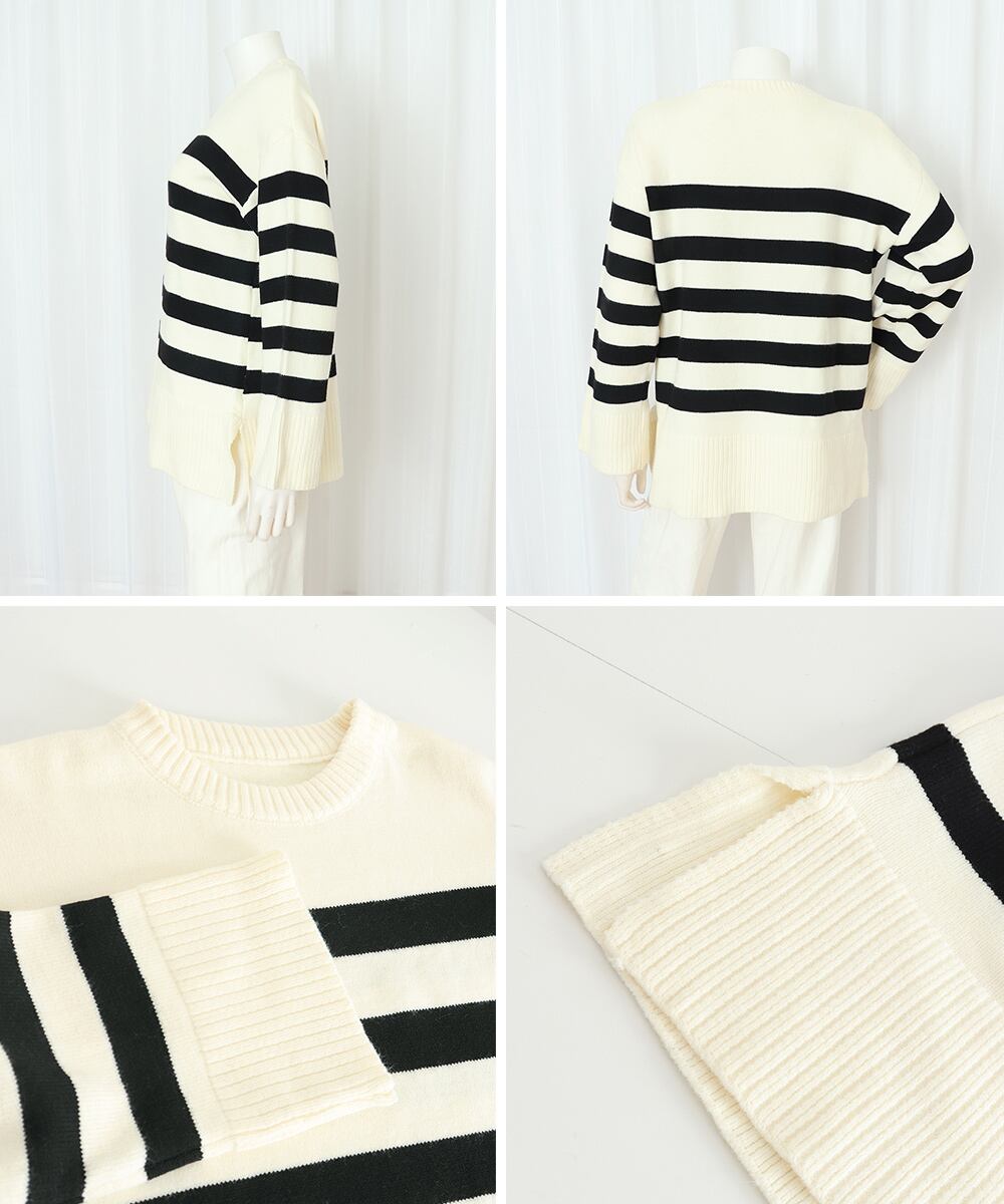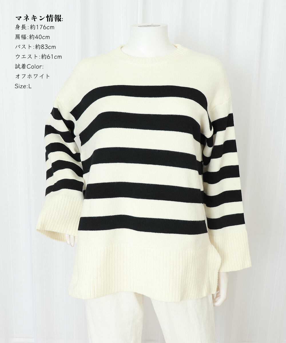 【商品説明】 リラックス感のあるボーダーニットをご紹介! ドロップショルダーで抜け感をプラスし、 カジュアルにもきれいめにも合わせやすい一枚。 季節の変わり目にさらりと着られて、 デイリーコーデの主役として活躍します。 ・・・・・・・・・・・・・・・・・・・・・ 【カラー】 ブラック/オフホワイト/ベージュ ※撮影条件等の違いによりで実際とは色合いが異なる場合があります。 ・・・・・・・・・・・・・・・・・・・・・ 【サイズ】S/M/L [S]着丈:約66cm 肩幅:約50cm 袖丈:約47cm ゆき:約72cm 身幅:約55cm 胸囲:約110-120cm [M]着丈:約68cm 肩幅:約51cm 袖丈:約47cm ゆき:約72.5cm 身幅:約56cm 胸囲:約112-122cm [L]着丈:約70cm 肩幅:約52cm 袖丈:約47cm ゆき:約73cm 身幅:約57cm 胸囲:約114-124cm 裏地:なし 伸縮性:あり 透け感:なし 生産国:中国 ※商品を平らな台に置いてメジャーで計測した平置き実寸サイズです。 ※現物と若干の誤差がある場合がございます。予めご了承くださいませ。 ・・・・・・・・・・・・・・・・・・・・ 【素材・成分】 素材:ポリエステル75%+アクリル25% ・・・・・・・・・・・・・・・・・・・・・ 【納期について】 ※この商品は、国内倉庫より3営業日以内で発送します。 商品番号:99GLT-005 ご注文前に必ずご確認ください。 https://bloomlatte.base.shop/items/27485852