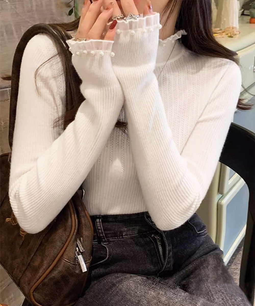 【商品説明】 パールをあしらったフェミニンな印象のリブニットトップスをご紹介! 首元と袖口のメロウフリルデザインが、さりげなく女性らしさを引き立てる。 柔らかく伸縮性のある素材で、フィット感がありながらも快適な着心地。 スカートやデニムはもちろん、ジャンスカやジャケットのインナーとしてもおすすめ。 ・・・・・・・・・・・・・・・・・・・・・ 【カラー】 ブラック/ホワイト/アイボリー/ベージュ ※撮影条件等の違いによりで実際とは色合いが異なる場合があります。 ・・・・・・・・・・・・・・・・・・・・・ 【サイズ】ワンサイズ 着丈:約57cm 肩幅:約27cm 袖丈:約54cm ゆき:約67.5cm 身幅:約33cm 胸囲:約66-120cm 裏地:なし 伸縮性:あり 透け感:淡色のみ若干あり ※ニット素材の為、伸縮具合によっては編みに隙間を感じる場合があります。 生産国:中国 ※商品を平らな台に置いてメジャーで計測した平置き実寸サイズです。 ※現物と若干の誤差がある場合がございます。予めご了承くださいませ。 ・・・・・・・・・・・・・・・・・・・・ 【素材・成分】 素材:ポリエステル75%+アクリル25% ・・・・・・・・・・・・・・・・・・・・・ 【納期について】 ※この商品は、国内倉庫より3営業日以内で発送します。 商品番号:89MAYI-001 ご注文前に必ずご確認ください。 https://bloomlatte.base.shop/items/27485852