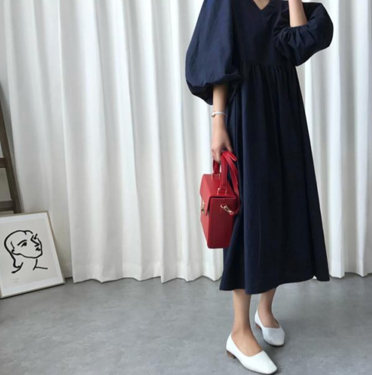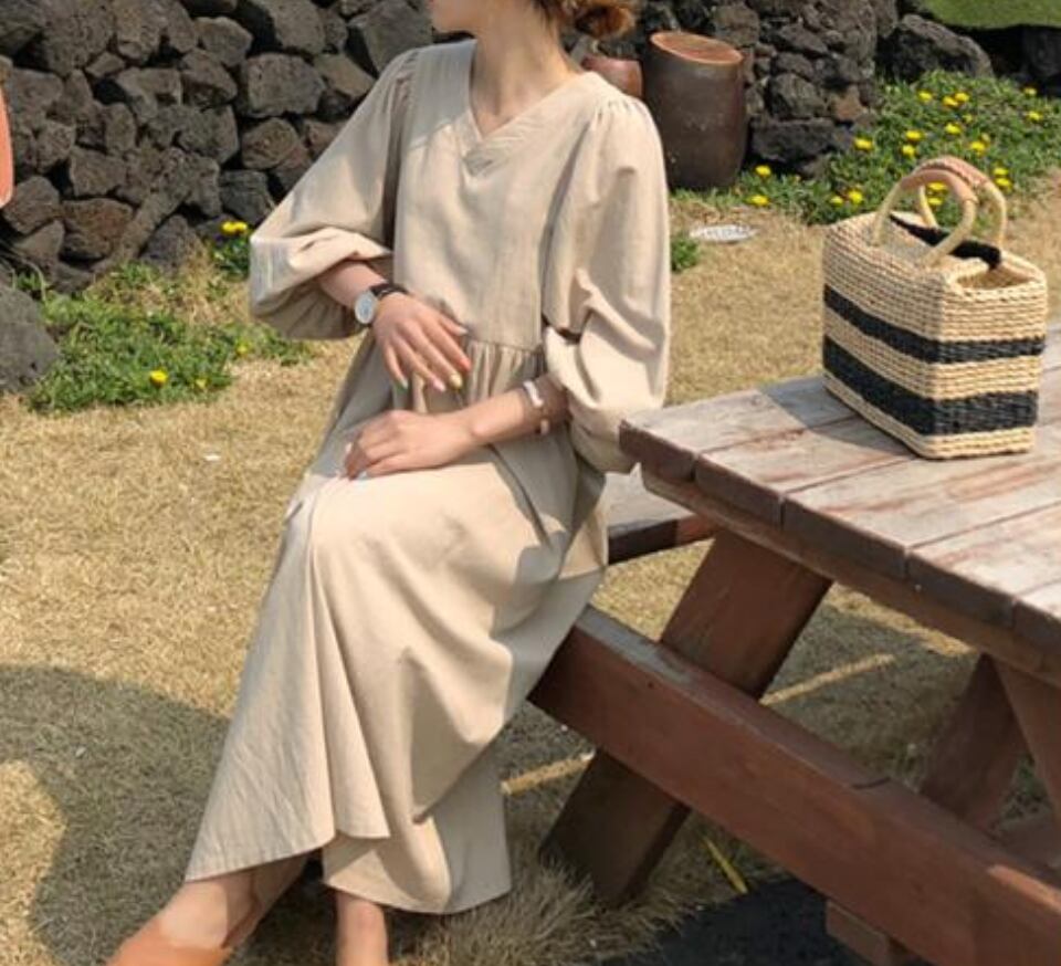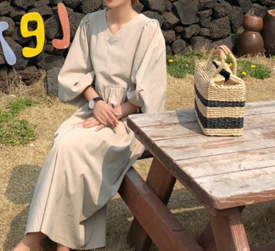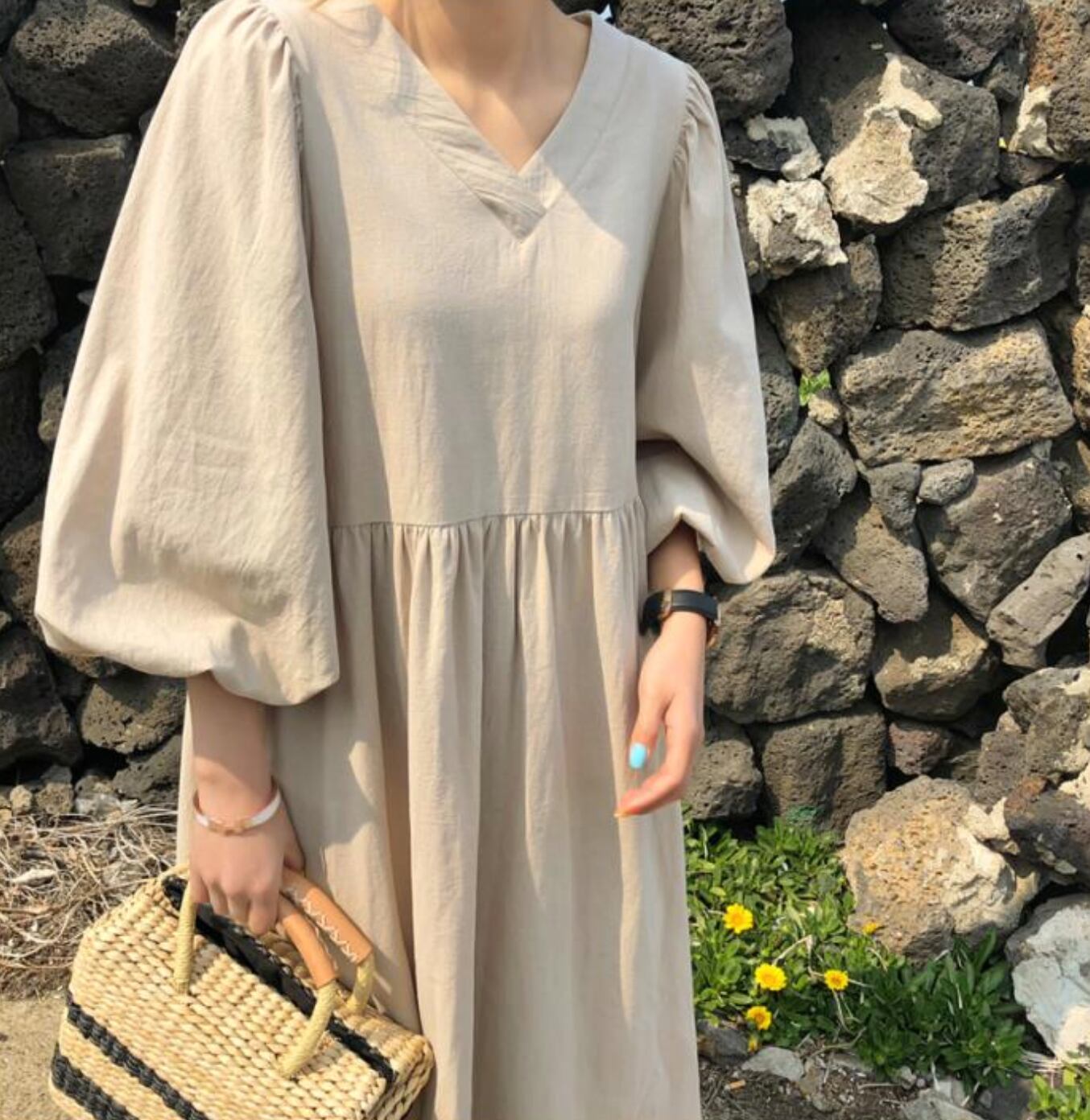 ゆったりしたシルエットで楽ちんなのに Vネックでデコルテきれい魅せが叶います。 細い手首と、足首が見えるので 体型カバーしながらもスタイル良く見せてくれます。 袖丈は長い作りになっていますが、 袖口にゴムが入っているのでお好みの位置まで上げていただけると ふんわりとしたボリュームスリーブになります。 ボリュームのあるスリーブがポイントです✨ 大人のリラックスコーデにおすすめです。 ・・・・・・・・・・・・・・・・・・・・・ 【納期について】 ※お取り寄せ商品は、発送までに3~5日間、配送に5~7日間のお時間を頂きます。 (お届けまでの間、メールにて配送状況をお伝えいたします) ・・・・・・・・・・・・・・・・・・・・・ サイズ: S:着丈 115cm・バスト100cm・肩幅32cm・袖丈33cm M:着丈 116cm・バスト104cm・肩幅33cm・袖丈33cm L:着丈 117cm・バスト108cm・肩幅34cm・袖丈34cm XL:着丈 118cm・バスト112cm・肩幅35cm・袖丈35cm ※1㎝~3㎝程の誤差がある場合が御座います。 モデル:身長162cm・体重50kg・Sサイズ着用 カラー:ネイビー・アイボリー 素材:麻・綿・ポリエステル 商品番号:1090 ご注文前に必ずご確認ください。 https://bloomlatte.base.shop/items/27485852