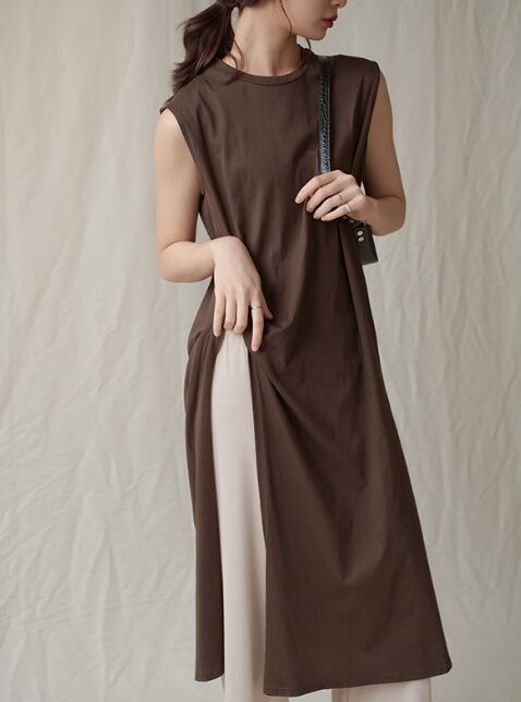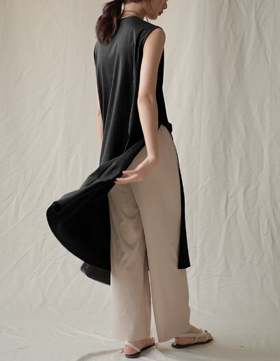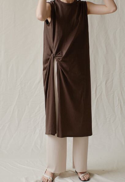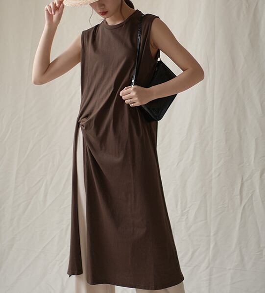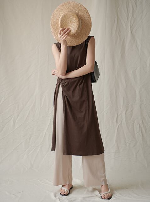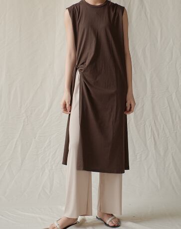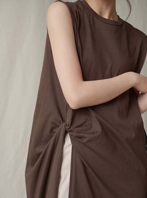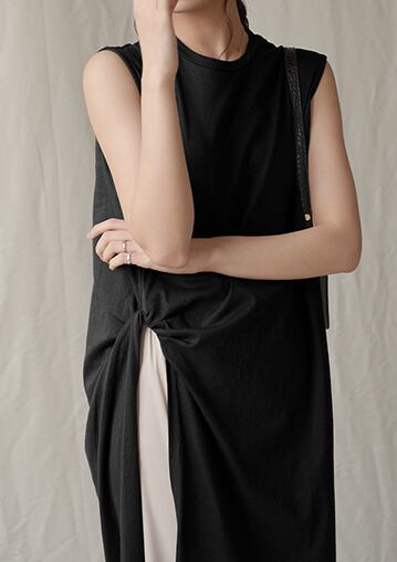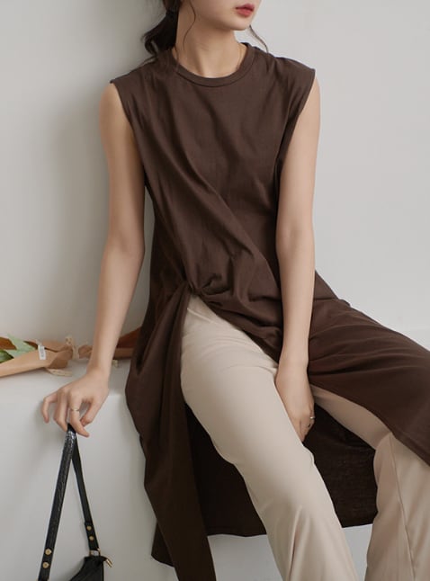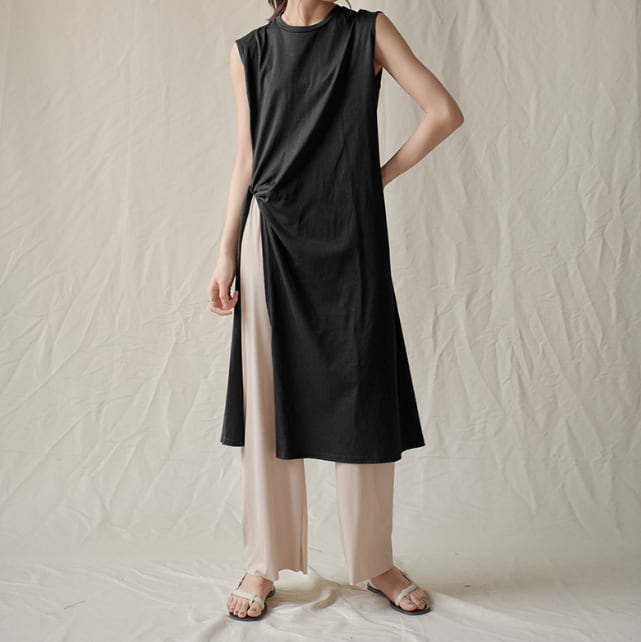 特徴的なミディ丈のノースリーブトップス。